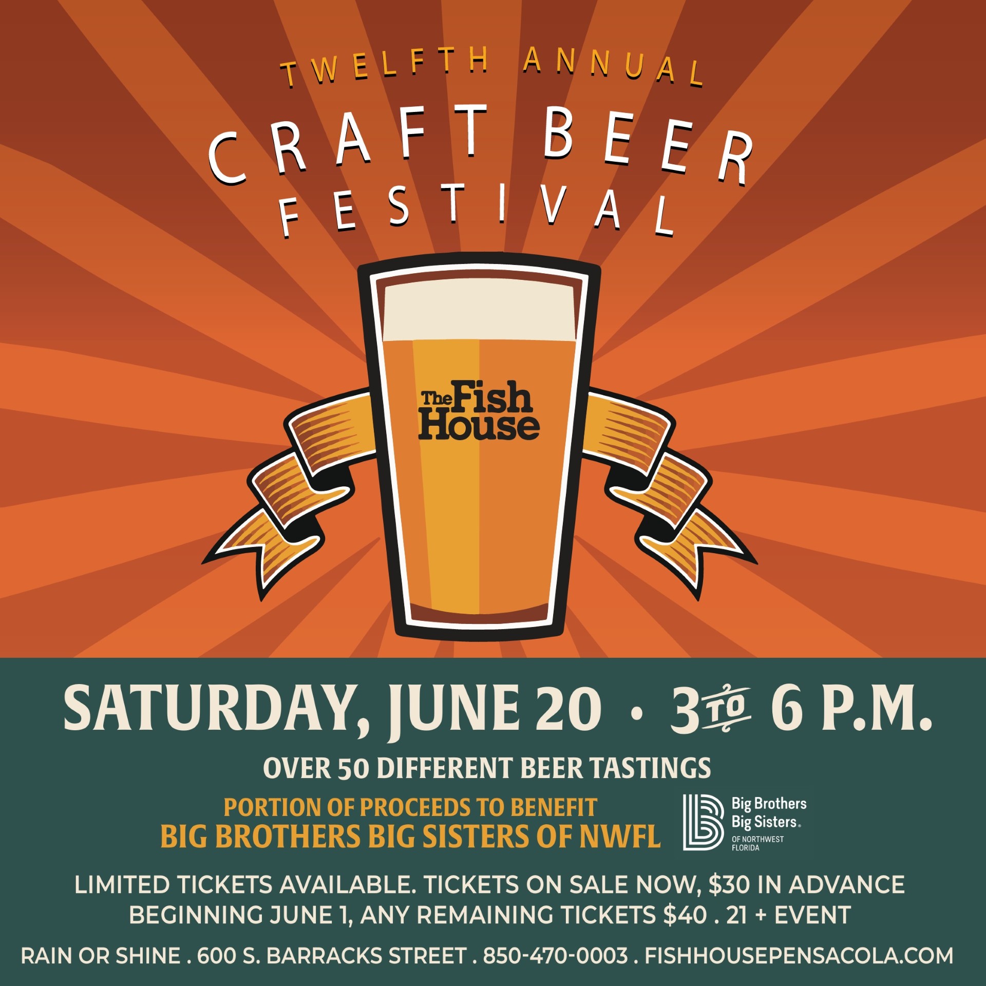 We will be featuring over 50 different beers with a portion of the event proceeds benefiting Big Brothers Big Sisters of Northwest Florida. According to the Great Southern Beverage Manager, Dean Clark, This event is designed to allow the public to taste a large variety of handcrafted beers with an opportunity to sample a number of styles to determine preferences. Beers from microbreweries, craft and specialty bottled beers will be available for tasting. We will also have spirits tables featuring a number of small-production vodkas, rums and bourbons. We love putting on this event because it benefits an amazing cause. Being able to showcase and support not only local breweries, but the beverage community as a whole is so important to us.