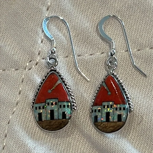 Brand New Never Worn Santa Fe Style Plum Coral Multi Gemstone Pueblo Southwestern Earrings In Sterling Silver NWOT. Elevate your style with the enchanting allure of this Santa Fe style spiny turquoise Pueblo Sterling Silver Pendant. Inspired by the rich cultural tapestry of the southwest, it would make a perfect addition to any jewelry lovers collection. Spiny Turquoise InfoGemstone color: Blush Orange Average clarity: opaque Setting type: bezelEarrings Info:Type: Fashion Metal: Sterling Silver Clasp: French Wire/ Fish HookNOTE: I also have a pendant that matches these in my closet.🎉IF YOU LIKE THE ITEM BUT NOT THE PRICE, PLEASE SEND ME AN OFFER. I ACCEPT ALL REASONABLE OFFERS!!! 🎉Bag #15